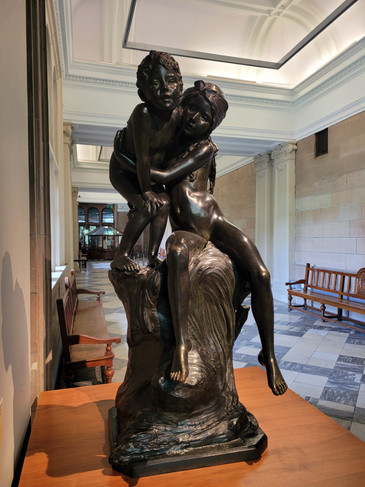 Several sculptures: Queen Victoria, Robert the Bruce, Achilles, and a popular father-daughter piece titled “Motherless”
