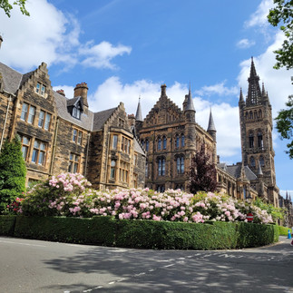 I was deliberately waiting to visit Kelvingrove until later in the afternoon so I could catch the daily organ recital. It’s usually at 1:00pm, except on Sundays when it occurs at 3:00pm. I had about two and a half hours to fill. After some expert Google-mapping, I cut back behind Kelvingrove to get to the Hunterian on foot. This worked out perfectly because I passed by the war memorial outside of Kelvingrove and then had to cross through the University of Glasgow campus. I didn’t dally around campus, but it does have some incredible architecture and the landscaping was in full bloom, so I stopped to snap a few photos.