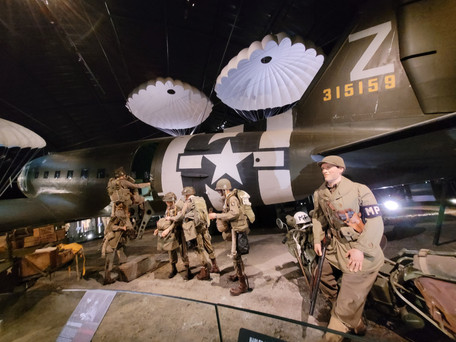 After lunch, I headed to the Airborne Museum. Entry was included with the tour, I had to give the tour name and a password that Guillaume relayed to us before leaving the van. The museum had multiple facilities and outdoor displays. It was a full sensory and immersive experience. There were videos, photos, and parachute objects galore on display. There was even a holograph presentation designed to inform guests about the D-Day airborne operations.